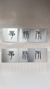 室名プレートの製作を行わせていただきました。 表記内容、サイズ変更もできます。 ご要望等、ございましたらお気兼ねなくご相談ください。 某企業 室名プレート