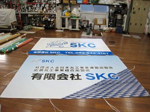 幕製作を行わせていただきました。 表記内容、サイズ変更もできます。 また工事に際しましては、騒音に注意し安全の確保に十分な対策をたてて進めて参ります。 ご要望等、ございましたらお気兼ねなくご相談ください。 某企業様 横断 […]