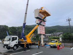 店舗様の袖看板の部分修繕工事をいたしました。 表記内容、サイズ変更できます。 自社で鉄骨の製作も可能なため、鉄骨・シート製作・施工を全て一括で承ることが可能です。 また工事に際しましては、騒音に注意し安全の確保に十分な対 […]