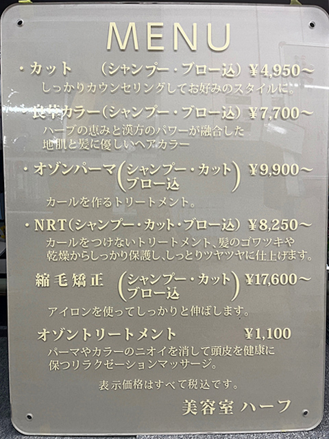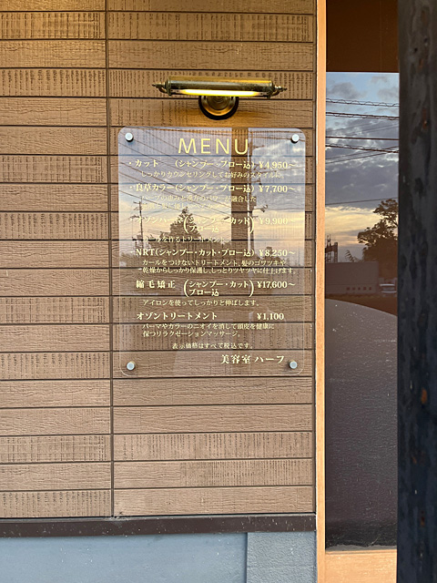 某美容院店 メニュー表アクリルパネル製作