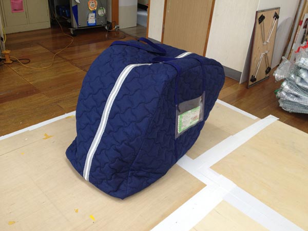 車イス梱包用カバー 2023年10月9日 最終更新日時 : 2024年3月18日 fujiwara21 車イスを郵送する際に使用する梱包用カバーです。出し入れしやすいように口は大きく開くようになっています。突起部分を守る部分カバーも製作させて頂きました。 その他施工例一覧に戻る 設備・作業用品・小物一覧に戻る